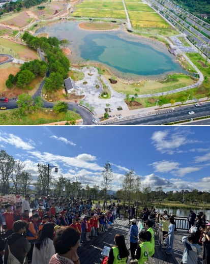 龍州濕地是九龍江流域山水林田湖草沙一體化保護(hù)和修復(fù)項(xiàng)目海綿城市建設(shè)范例工程,也是我市2023年十大重點(diǎn)攻堅(jiān)項(xiàng)目北部新城建設(shè)的“點(diǎn)睛之筆”,主要使用的是國家政策補(bǔ)助資金。項(xiàng)目占地面積約20公頃,通過“護(hù)山、理水、營林、興田、清湖、豐草”六大舉措,構(gòu)建了蓄洪湖區(qū)、生態(tài)修復(fù)區(qū)、農(nóng)田區(qū)及休閑區(qū)多樣用地,同時,設(shè)置了蓄洪湖、濕地步道、山谷攔蓄、引水工程等海綿設(shè)施,實(shí)現(xiàn)“城在田中田在城中”山水田園與城市和諧共生的美好景象。