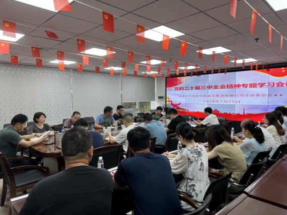 7月25日,市政集團黨支部組織召開黨員大會傳達學習習近平總書記在黨的二十屆三中全會上的重要講話和全會精神,貫徹落實市委、市政府城發(fā)集團黨委的工作部署。