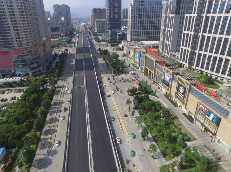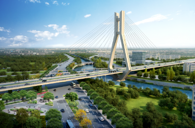 龍巖大道高架橋項(xiàng)目為省、市重點(diǎn)建設(shè)項(xiàng)目,是龍巖中心城市連接南北、溝通新老城區(qū)的重要樞紐,項(xiàng)目位于龍巖市南北交通中心軸和景觀軸線龍巖大道上,全長(zhǎng)3395m,包含橋梁和地面道路兩大部分,其中橋梁工程總長(zhǎng)2329m,橋?qū)?6m,包含一座190+150m獨(dú)塔斜拉索鋼箱梁主橋(主橋?qū)?6.3m),全線設(shè)計(jì)為雙向六車(chē)道,設(shè)計(jì)車(chē)速60km/h,在西陂路及人民路處各設(shè)置上下匝道,跨越雙洋路、羅龍東路、人民路、登高西路、西陂路城市主干道,項(xiàng)目總投資約24億元。