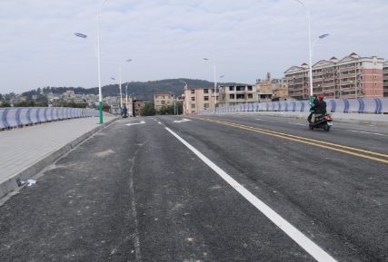 社興橋及兩側(cè)接線工程位于龍津河東風橋下游約580米,為城市次干道,橫跨龍津河,將社興的東興路與登高東路連接起來。道路全長224米,社興橋橋梁長133米,橋?qū)?5米,雙向四車道及5米寬非機動車和人行道,設(shè)計車速為30km/h,項目總投資3000萬元。