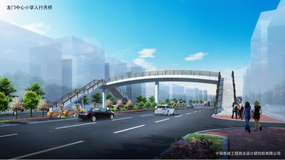 龍門(mén)中心小學(xué)人行天橋位于羅龍西路龍門(mén)中心小學(xué)西側(cè)約80米,主梁采用鋼箱型連續(xù)梁,腹板為圓弧形,主梁全長(zhǎng)33.8米,寬4米。梯道坡度1:2,長(zhǎng)16.9米、寬米,中間設(shè)置緩步平臺(tái)??偼顿Y約400萬(wàn)元。